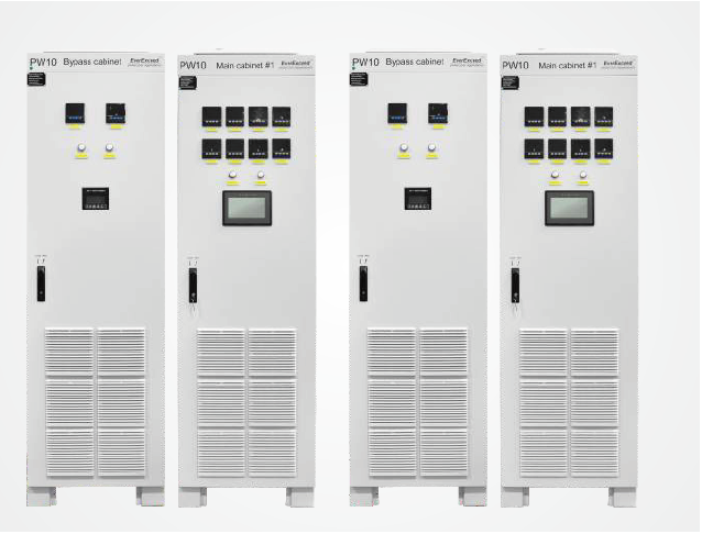Eingangs-/Ausgangstrennung mit integriertem Überspannungsschutz (SPD) und einem Bypass-Schrank mit Spannungsstabilisierung und -verteilung, um Stromversorgungssicherheit und -zuverlässigkeit zu gewährleisten;