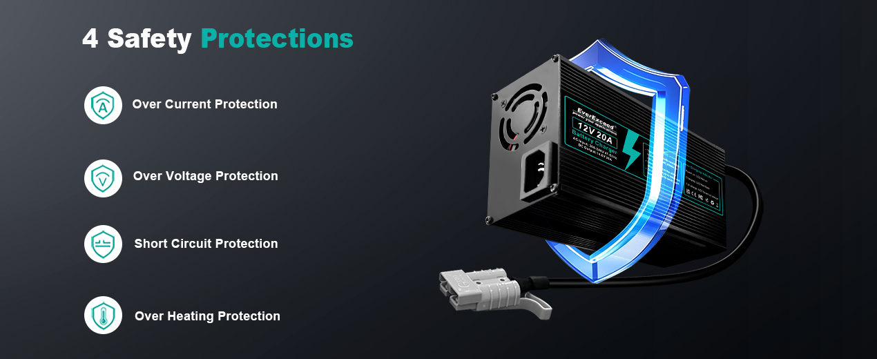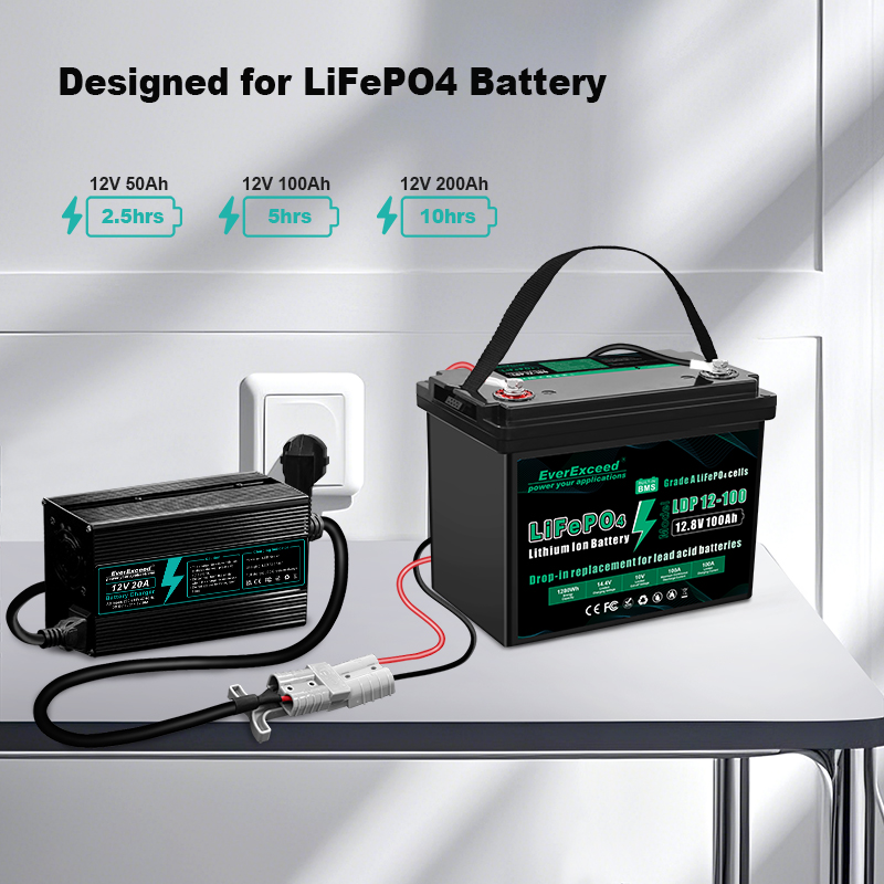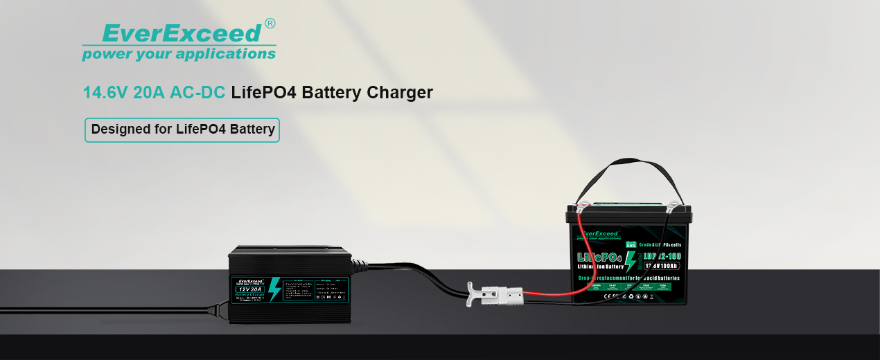 Das EverExceed Lithium-Batterieladegerät ist für das schnelle, effiziente und zuverlässige Laden von LiFePO₄ und anderen Lithium-Batterien konzipiert