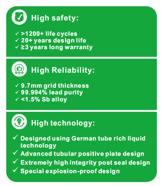 Platte: Dickste Gitterplatte der Branche (9,7 mm); Hochzinn-Blei-Calcium-Legierung, entwickelt mit niedrigem Antimongehalt, Sb<1,5%; Primärblei 1, Bleireinheit größer als 99,994%;