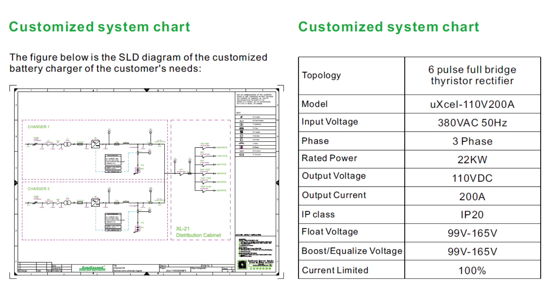 Diese industrietauglichen 110-V-200-A-Ladegeräte wurden speziell für ein Modernisierungsprojekt einer Papierfabrik in Pakistan entwickelt. Die Papierfabrik ist mit zahlreichen Gleichstromgeräten wie Steuer- und Messeinheiten ausgestattet, die über Fernschalt-, Telemetrie- und Überwachungsfunktionen verfügen. Die Ladegeräte gewährleisten eine zuverlässige Stromversorgung bei Stromausfällen und tragen so zur Aufrechterhaltung der Produktion, zur Verbesserung der Papierqualität und zur Reduzierung von Fehlern durch Spannungsschwankungen bei.